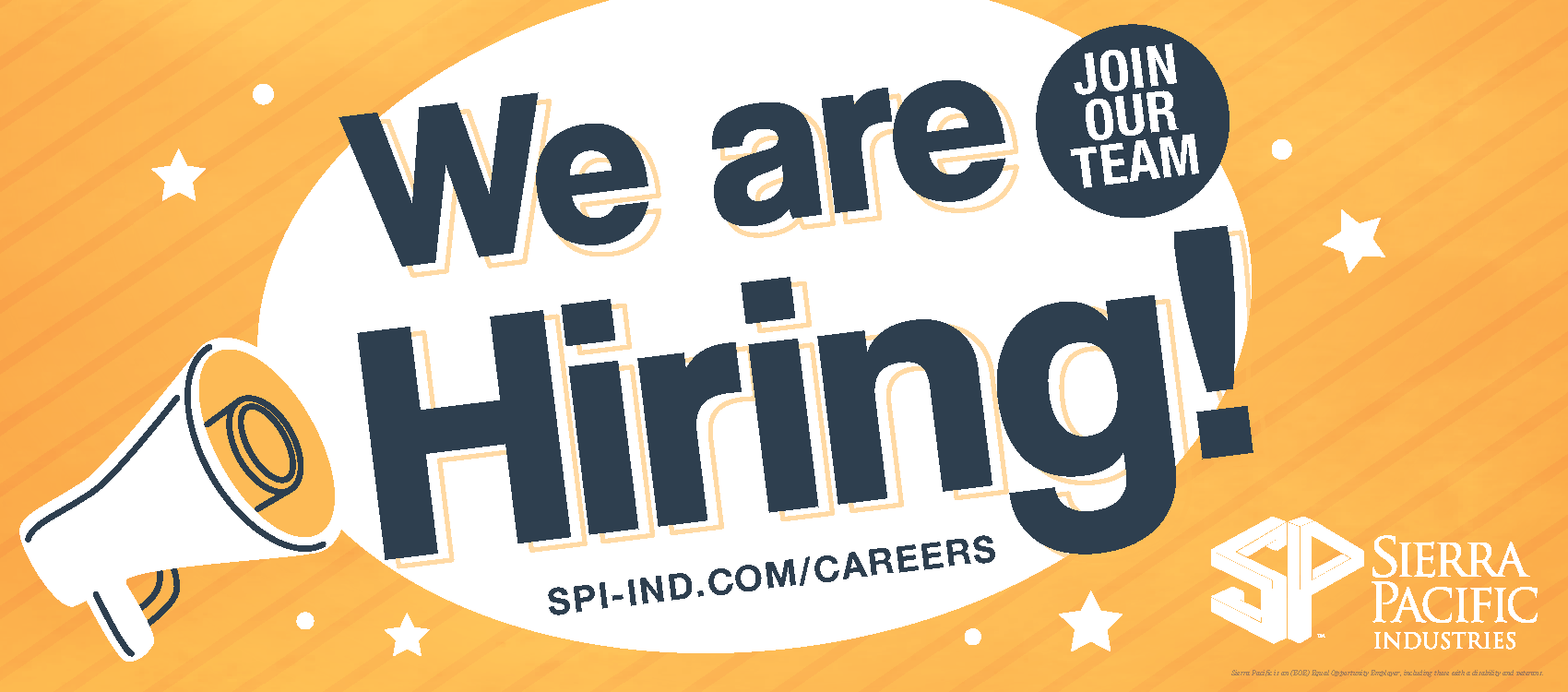 We are proud that all Sierra Pacific facilities follow our drug-free and tobacco-free policies. As part of our safety in the workplace policy, an offer of employment is subject to a negative drug screen result. We use E-verify to verify the social security number and work authorization of all newly hired employees. Sierra Pacific is an (EOE) Equal Opportunity Employer, including those with a disability and veterans.