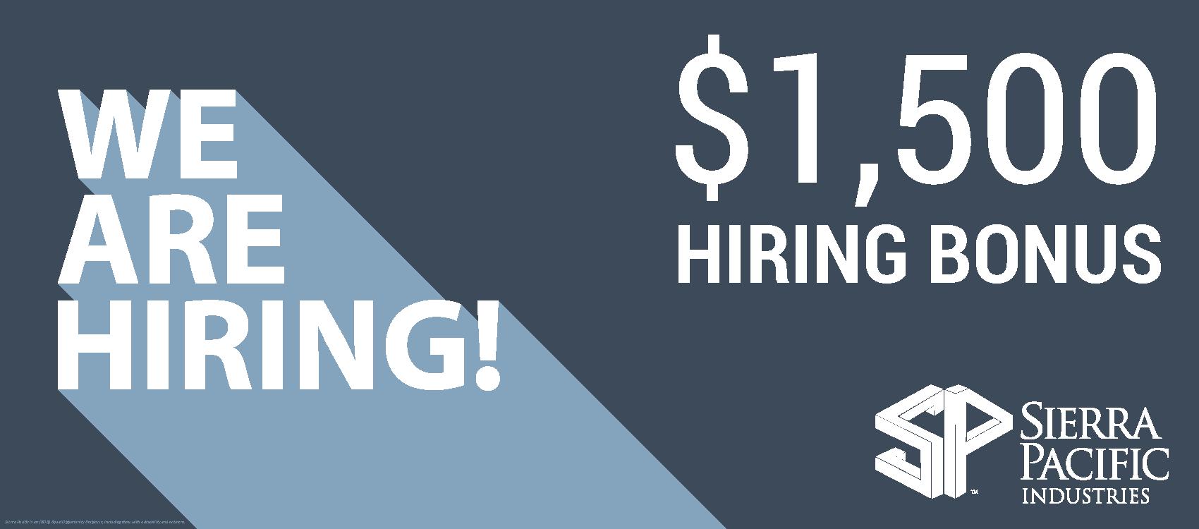 View all opportunities at: spi.careersSierra Pacific is an (EOE) Equal Opportunity Employer, including those with a disability and veterans.About Our Company Sierra Pacific Industries is a fourth-generation family-owned company based in Northern California that started in 1949 and has grown to be one of the largest lumber and millwork producers in the U.S., employing around 6,500 crew members. Sierra Pacific continues to be a company where its employees are proud to work at state-of-the-art facilities and others strive to become part of the team.